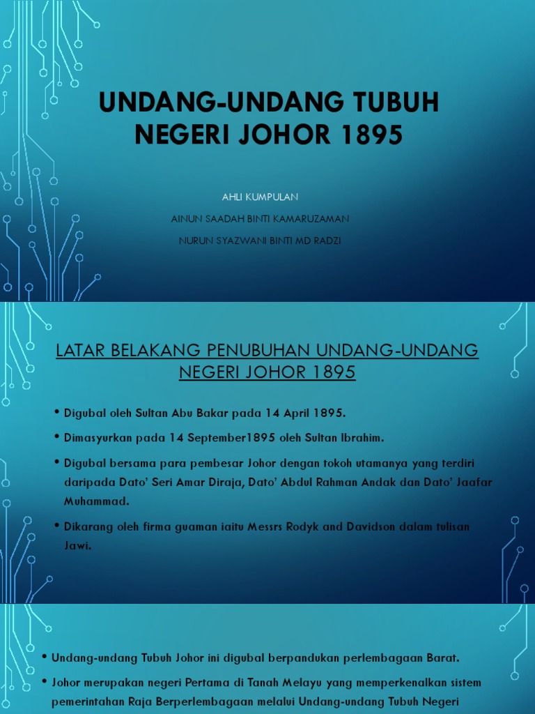 Johor lulus pindaan calon 18 tahun bertanding pilihan raya. The procedures for the selection and coronation of the Sultan of Johor as well as the succession procedures. I Undang-undang Tubuh Kerajaan Johor pada 14 april 1895 Sultan Abu Bakar memasyhurkan perlembagaan negeri yang dikenali sebagai Undang-Undang Tubuh Kerajaan Johor pengenalan undang-undang ini menjadikan Johor sebagai negeri Melayu pertama yang mengamalkan sistem raja berperlembagaan dan mempunyai.